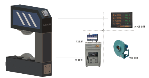 1.產品簡介:設備采用雙測頭測寬原理對板材的寬度進行測量,測頭豎直布置,可測量板面呈水平狀態下通過的板材寬度。測寬儀的雙測頭有兩種形式,當被測物的寬度范圍較小時采用固定式雙測頭;當被測物的寬度范圍較大時采用測量范圍可調雙測頭。