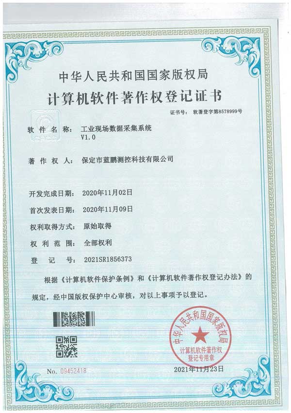 熱烈慶祝藍鵬測控,新一批專利證書申請成功。國家專利局頒發專利證書。
